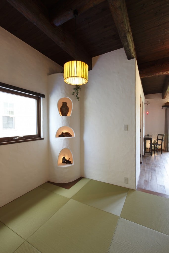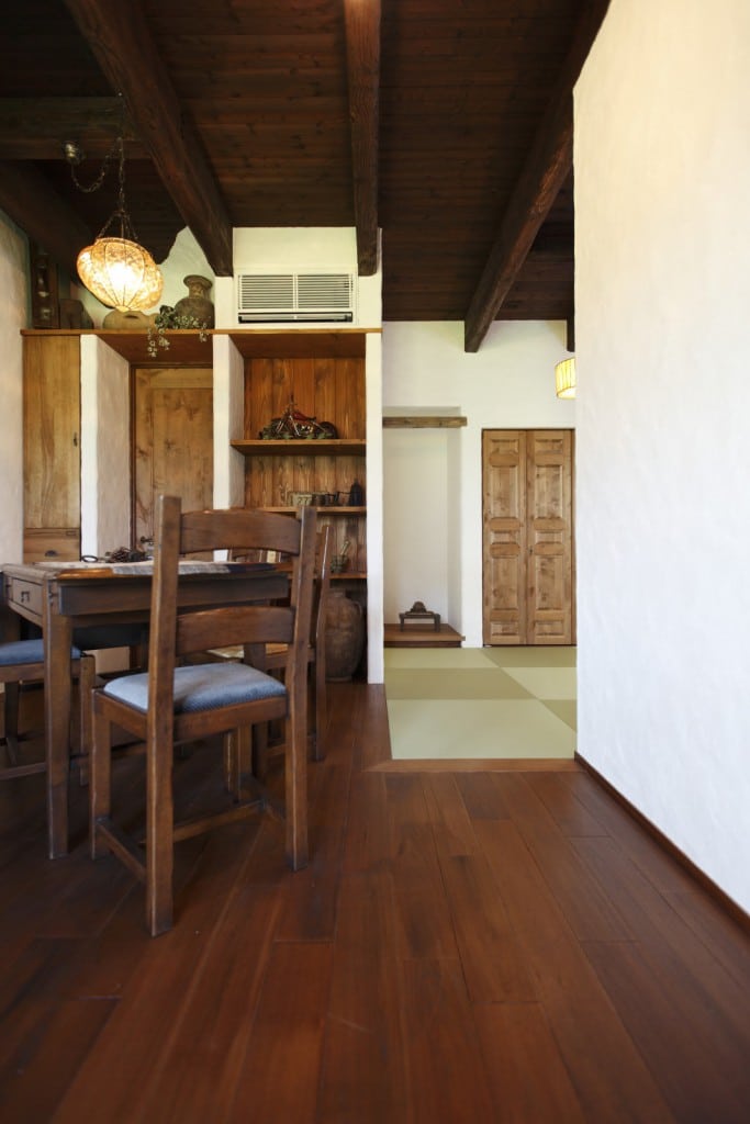 0011-1024x768 0042-1024x683 044-683x1024 0471-1024x683 0061-1024x683 0081-687x1024 0091-683x1024 0111-729x1024 0102-678x1024 0161-683x1024 0171-683x1024 0181-750x1024 0141-683x1024 020-684x1024 046-699x1024 漆喰の外壁のシンプルな白が緑を引き立たせ、優しいコントラストを生み出します。 たっぷりと設けた窓が、外からでもお家の明るさをイメージさせてくれます。 玄関までのアプローチも最大限シンプルな美しさ。庭の緑が映えて、おうちの出入りがうきうきした時間になります。 エイジング加工を施した梁や柱が、漆喰の内壁と調和して南欧のメゾンの雰囲気を作り上げます。あたたかい色みの照明がやさしく反射し、お部屋に息遣いが生まれます。 大きな窓からはこんなにたくさんの自然光が差し込みます。日中は照明を使用する必要がないくらいの明るさです。 木目に合わせたインテリアは「古美た」中で生き生きとしています。ゆったりと体を沈めれば、1日の疲れはあっという間に吹き飛んでしまいます。 床、棚、扉、机、椅子全てを同じ雰囲気の木目調に統一。奥の琉球畳の部屋も見事に調和し、見た目にもリラックスできる仕上がりになりました。 ところどころに配した飾り棚が、施主様こだわりの世界を完成させます。 エアコンは壁に埋め込むことで、快適さと雰囲気を両立しました。 キッチンにはたっぷりの収納スペースを確保。外観を損なわずに利便性を追及したつくりは、奥様のお気に入りです。 キッチンスペースは黒を基調に清潔感とシックさを演出しました。見える木目調の梁が 暖かさを感じさせます。 さまざまなデザインのこだわり照明が、表情豊かに映えます。ひとつひとつの照明の下に、違った物語が流れていきます。 和室には、木を置かず全面的に白を基調としました。デザイン性のある収納棚には日本的な物を飾ることで空間の統一感がグッと増します。 水回りにも全体的に木を主張させました。壁一面の鏡に周りの木が映ることで、空間の広さをより感じることができます。 玄関はおうちの顔。家族のこだわりが、これでもかと詰まっています。 帰ってくるたび、笑顔にしてくれる…それこそが、おうちの役割なのかもしれません。