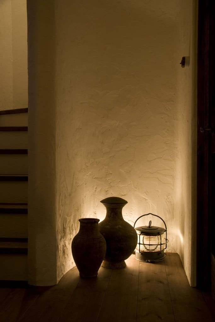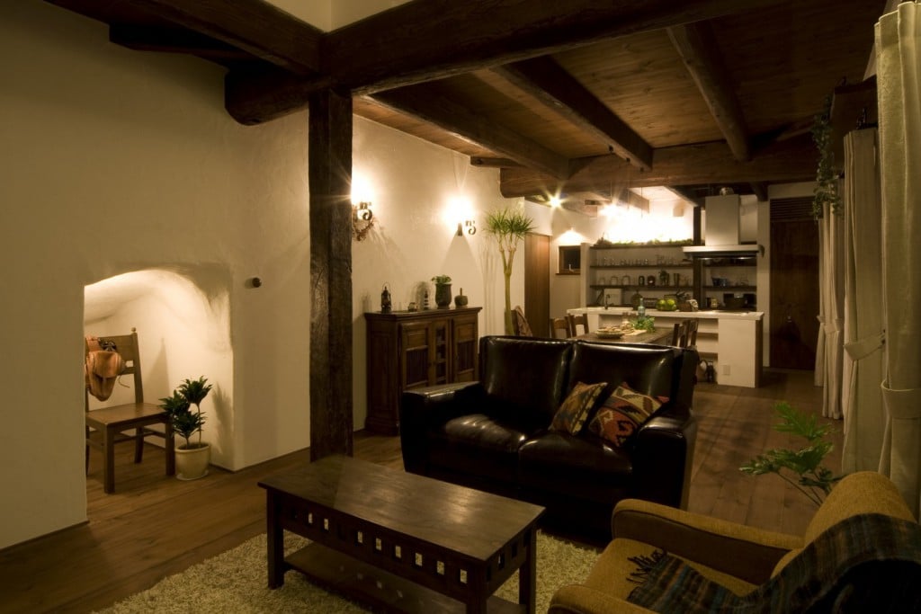 lf04-01-685x1024 lf04-06-1024x672 lf04-07-683x1024 lf04-14-1024x683 lf04-50-683x1024 lf04-48-1024x683 lf04-32-1024x703 lf04-27-683x1024 lf04-60-683x1024 lf04-30-683x1024 lf04-36-1024x683 lf04-47-683x1024 lf04-53-683x1024 lf04-61-683x1024 lf04-73-683x1024 上部にある丸窓が特徴的で、シンメトリーでスッキリと外観のお家。フランスの片田舎にある古くて美しい家をイメージした、ラフェルムらしいシンプルさが特徴です。やわらかい色合いの厚みある漆喰壁と、エイジング加工した深い色の木材を使ったドアや庇が調和し、落ち着きある風貌を作り上げています。 玄関周りの小物は手作りのアンティーク調で統一し、時が経過したような味わいをプラスしました。 庇を近くで見ると、その手作りの風合いがじんわりと浮かび上がってきます。一枚一枚絶妙に異なった色合いの木材を丁寧に組み合わせ、木の自然な曲線やゆがみを活かしたデザインは、立体的で自然の温もりを感じさせます。 お家のチャームポイントとも言える丸窓は、石で作った枠を合わせました。形が不揃いの石を並べることで無機質な表情にならず、活き活きとした存在感を放ちます。フランスの片田舎にある石畳をイメージしたラフェルムこだわりのポイントです。 細かい部分にも徹底してこだわりを詰め込んでいます。インターフォンには特注の木製カバーを被せ、機械的な部分を隠す配慮を。経年劣化したような木の風合いで周囲と馴染ませるだけでなく、何とも可愛らしい小さなドアの細工で遊び心を加えました。来客時も話題のタネが生まれるような、ちょっと楽しい玄関口です。 日が暮れると、玄関横の窓からあたたかな光がこぼれ出し、外灯が優しく足元を照らしてくれます。昼間とは違うどこかノスタルジックな表情を見せ、帰宅した家族がホッと安心するような風景がそこに広がります。 LDKは仕切りなくワンフロアにした開放的な作りで、全体的に落ち着きあるトーンでまとめました。照明を壁に取り付け、間接照明のように漆喰壁を活かすことで、眩しくなく心が安らぐような明かりが、全体を包んでくれます。 キッチンは開放的なアイランド式を採用。ご家族の繋がりを大切にした視界の広さが特徴です。艶のあるタイルで清潔感を出しながらも、土台は漆喰と木を活かしたラフェルムスタイル。収納スペースも十分に確保し機能性もしっかり考慮。日々多く使う場所だからこそ、使いやすく飽きの来ないシンプルなデザインを追求しました。 2階の階段上には小さな窓があります。単なる飾りというものではなく、視界が通ることで圧迫感がなくなり、広さを感じる作りになっています。窓下のスペースには棚を設置し、お洒落なアンティーク雑貨がとても似合っています。 寝室の照明には素敵なこだわりを加えました。ガラスカッティング加工を施した照明が、キラキラとした宝石のような光を放ち、壁や天井を明るく彩ってくれます。就寝前のちょっとした時間に、そっと心を落ち着かせてくれる空間が生まれました。 贅沢にも部屋の真ん中にベットを設置し、広々と圧迫感なく過ごせるようにした点もこだわりの一つ。ベットフレームもアンティーク加工の品を厳選しました。ご家族お気に入りの落ち着く空間が、深い眠りへと誘ってくれます。 洗面スペースはスッキリとシンプルにまとめました。汚れが目立ちにくい色合いの加工タイルは、掃除も楽で機能的です。蛇口はアンティーク感のある鉄製が味わい深いです。 階段横のスペースも無駄にしません。間接照明を置くことで、漆喰の優しい表情が明るく浮かび上がり、花瓶のシルエットとの絶妙なコントラストが表れます。 ドアや照明、ガラスから小物まで全てのものを味わい深く加工したもので統一することで、お家のどこを切り取っても絵になる風景が広がります。ドアにかかったほうきが何とも愛らしく、掃除も楽しくなりそうです。 イス一つとっても、触れると木の温もりを感じるような風合いのものをチョイスすることで、室内の雰囲気がグッと深まります。堅い質感であるはずなのにやわらかな表情を醸し出すアンティーク調。 ラフェルムは、そういった「目で感じる優しさ・ぬくもり」を大切にし、皆さまの心に染み入るデザインをご提供します。